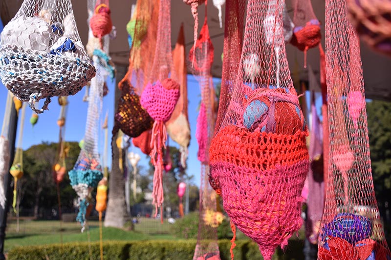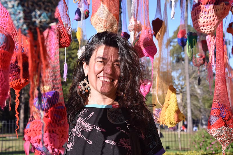 Isolda Nuñez Portillo se define como ecoartista, feminista y boquense. Con más de 25 años de experiencia como artesana, costurera, pintora, tejedora y bordadora, su obra se nutre de objetos reciclados y de las herencias de abuelas, amigas y vecinas.