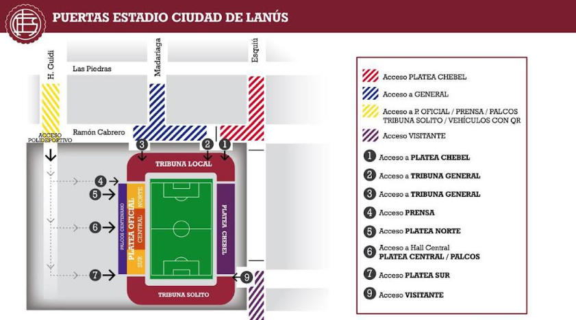 - Se solicita evitar el acceso por la zona este de Lanús, reservada para el público local.