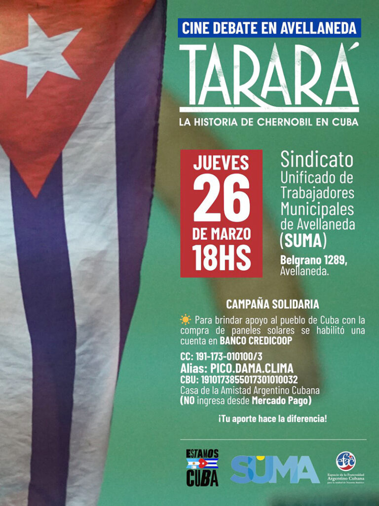 Este jueves 26 de marzo a las 18 horas en la sede del Sindicato Unificado Municipales de Avellaneda (SUMA) se realizará una jornada de cine debate en solidaridad con la República de Cuba.