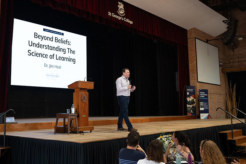 La jornada, titulada “Teaching with Learning in Mind” (Enseñar con el aprendizaje en mente), forma parte de un trabajo integral que el colegio viene desarrollando con el Dr. Heal para implementar prácticas educativas basadas en evidencia científica, trabajar en el aula sobre métodos de enseñanza que hoy en día está probado que funcionan y derribar preconceptos sobre educación que se vienen repitiendo hace décadas. De este modo, el St. George’s College busca democratizar el acceso a estos conocimientos, compartiéndolos con toda la comunidad educativa en la región.