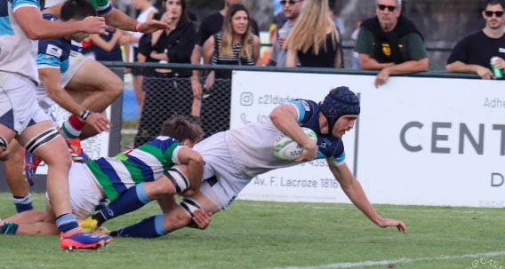 Los ataques del local eran imparables y en una jugada que todos tocaron la pelota, apoyaron un try en la bandera. SM 8 CAR 0