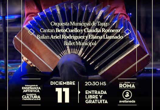 La Orquesta Municipal de Tango de Avellaneda regresará este jueves 11 de diciembre al escenario del Teatro Roma para ofrecer un concierto especial en homenaje al Día Internacional del Tango. La propuesta invita a recorrer la historia y la fuerza de la música ciudadana a través de una selección de obras emblemáticas interpretadas en vivo.