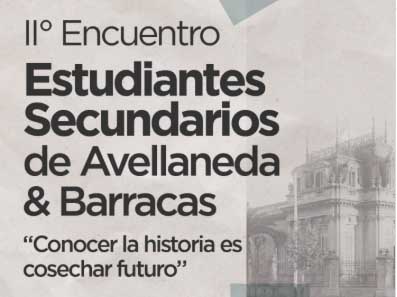 Este viernes 24 de octubre, de 9 a 13 hs, se realizará el II° Encuentro de Estudiantes Secundarios de Avellaneda y Barracas bajo el lema “Conocer la historia es cosechar futuro”. La cita será en el Centro Municipal de Arte, ubicado en San Martín 797, esquina Alsina, en pleno corazón de Avellaneda Centro.