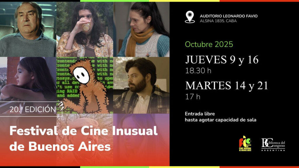 La Biblioteca del Congreso de la Nación será escenario de la 20° edición del Festival de Cine Inusual de Buenos Aires, que se desarrollará en diversas sedes de la ciudad, entre las que se encuentra el Espacio Cultural BCN (Alsina 1835, CABA).