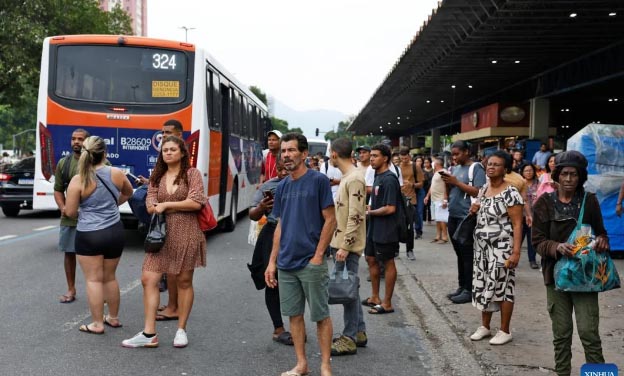 Imagen cedida por la Agencia Brasil el 28 de octubre de 2025 de personas esperando el transporte público que se vio afectado por una megaoperación de las fuerzas de seguridad contra un grupo criminal, en Río de Janeiro, Brasil. Al menos 60 personas murieron, entre ellas cuatro policías, y 81 fueron detenidas el martes en una megaoperación de las fuerzas de seguridad contra el grupo criminal Comando Vermelho en los complejos del Alemão y de Penha, en la zona norte de Río de Janeiro, informaron fuentes oficiales. (Xinhua/Fernando Frazao/Agencia Brasil)