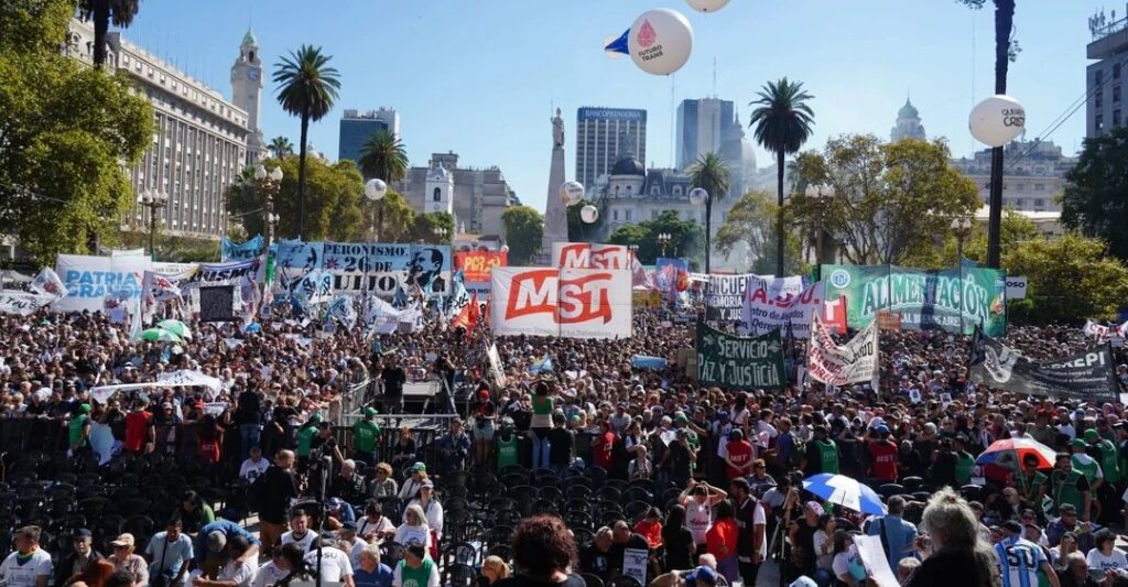 “Estamos juntos nuevamente en esta histórica plaza y en todas las del país con profunda convicción para afirmar que la memoria se defiende luchando”, manifestaron los organizadores en la lectura.