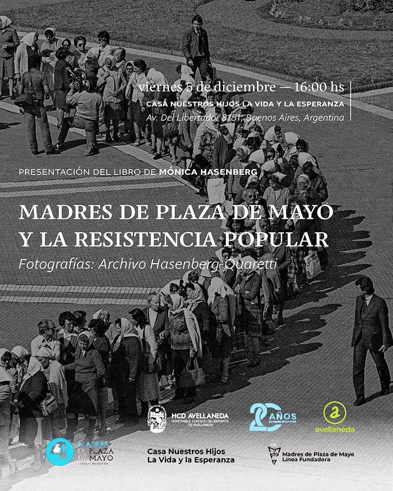 El próximo viernes 5 de diciembre, a las 16 horas, se realizará en la Casa Nuestros Hijos, La Vida y La Esperanza de las Madres de Plaza de Mayo, Línea Fundadora, ubicada en la Ex ESMA, la presentación del libro “Madres de la Plaza de Mayo y la Resistencia Popular”, editado por el Honorable Concejo Deliberante de Avellaneda.