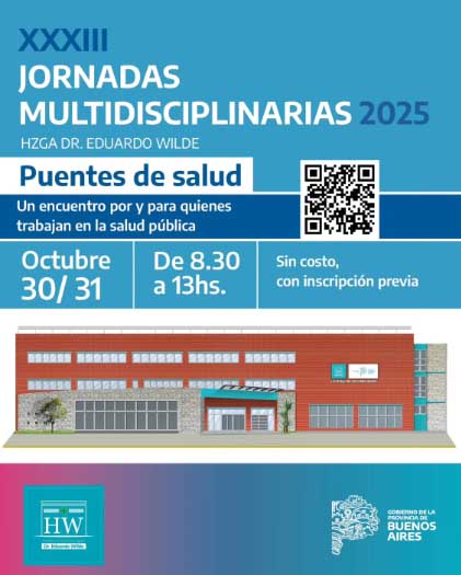 El Hospital Interzonal General de Agudos Dr. Eduardo Wilde será sede, los días 30 y 31 de octubre, de las XXXIII Jornadas Multidisciplinarias 2025 bajo el lema “Puentes de salud”. El evento, que se desarrollará de 8:30 a 13 hs, propone un espacio de encuentro, aprendizaje y colaboración para quienes se desempeñan en el ámbito de la salud pública.