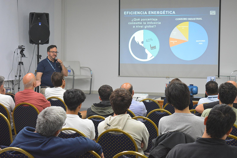 La capacitación estuvo a cargo de un equipo de representantes técnicos de WEG Internacional, empresa brasileña de producción de motores de baja, media y alta tensión para la industria, y de equipamientos de seguridad de máquinas, automatización y tableros eléctricos, entre otros, con sedes en distintas partes del mundo. “Elaboramos productos para diferentes rubros, como transformadores de distribución y de potencia, variadores de velocidad y paneles solares, y somos fabricantes de los componentes de estos equipos lo que permite asegurar la calidad del proceso productivo”, comentó al respecto Gastón Sainz Le Roux, promotor técnico del área de ventas de WEG.